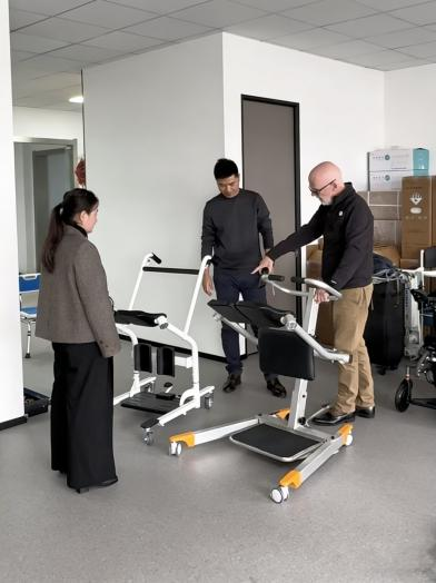 Însoțit de directorii noștri relevanți, domnul James a discutat despre două modele de lifturi multifuncționale pentru transferul pacienților, a inspectat cu atenție structurile de eșantionare și a efectuat teste la fața locului.